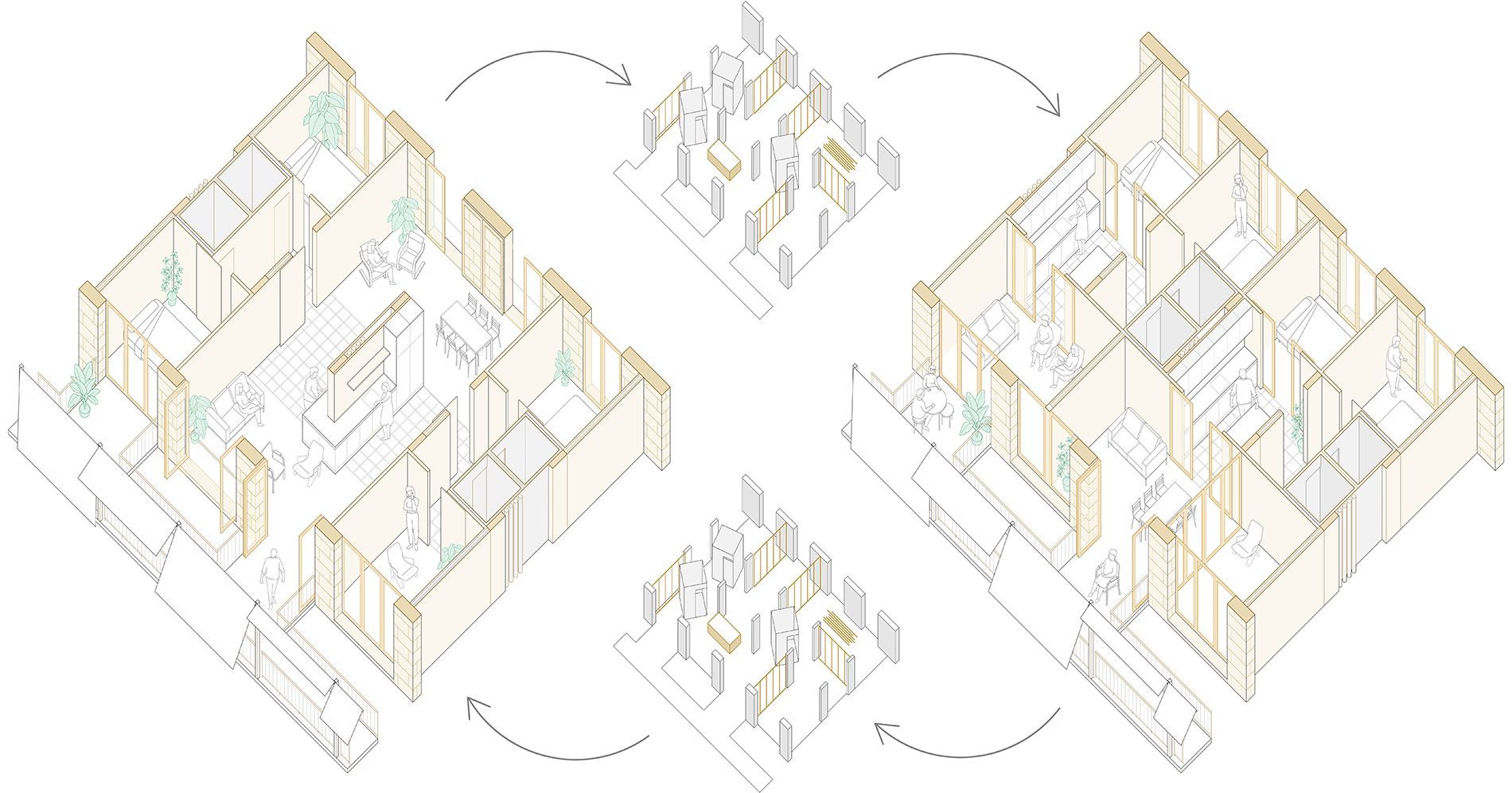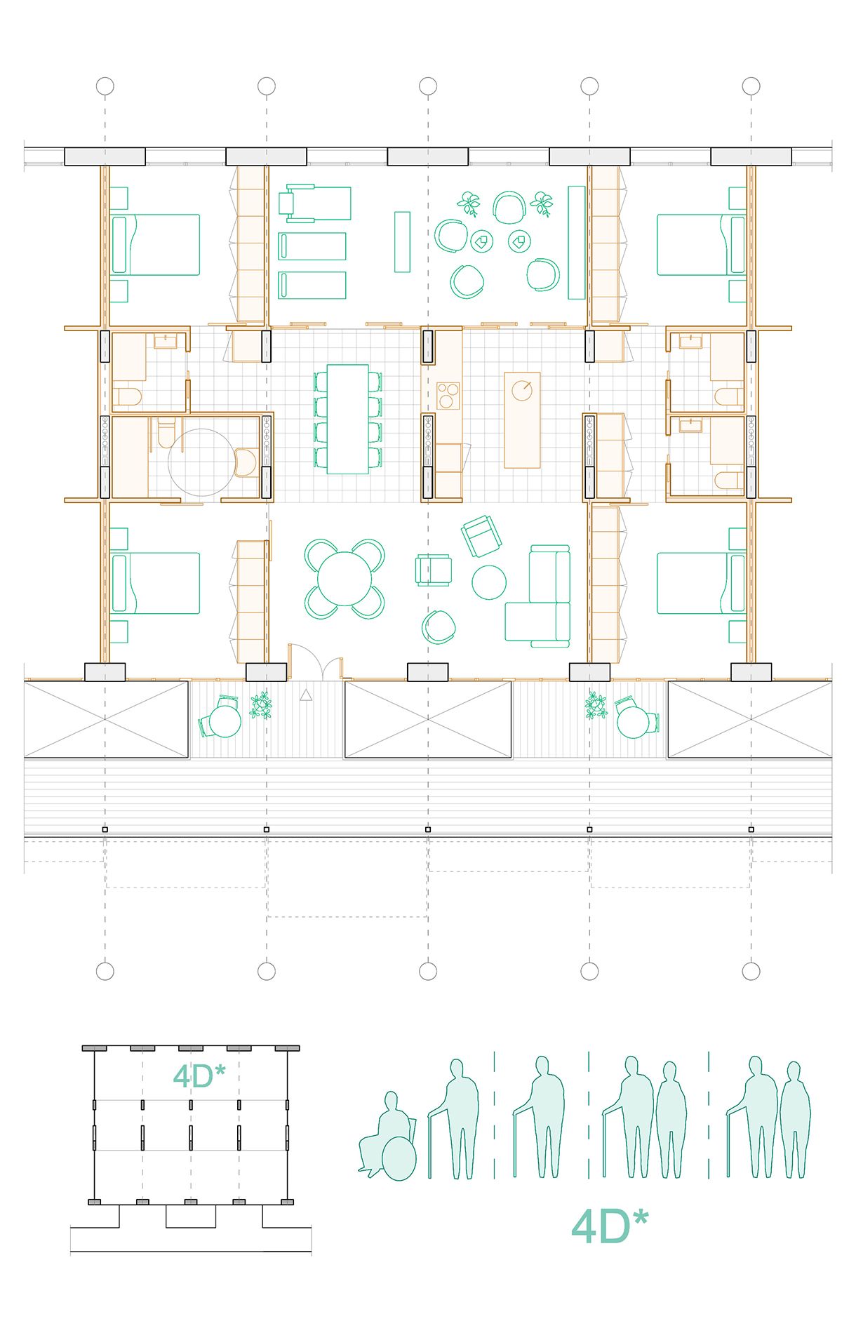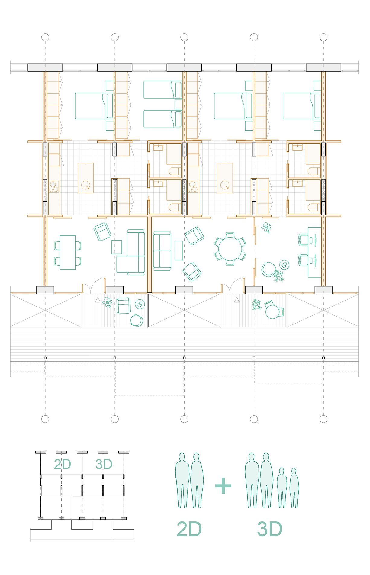 - Programa: se propone un programa residencial pensado específicamente para ser modificado en el tiempo, permitiendo adaptar el edificio a las necesidades demográficas de cada momento.