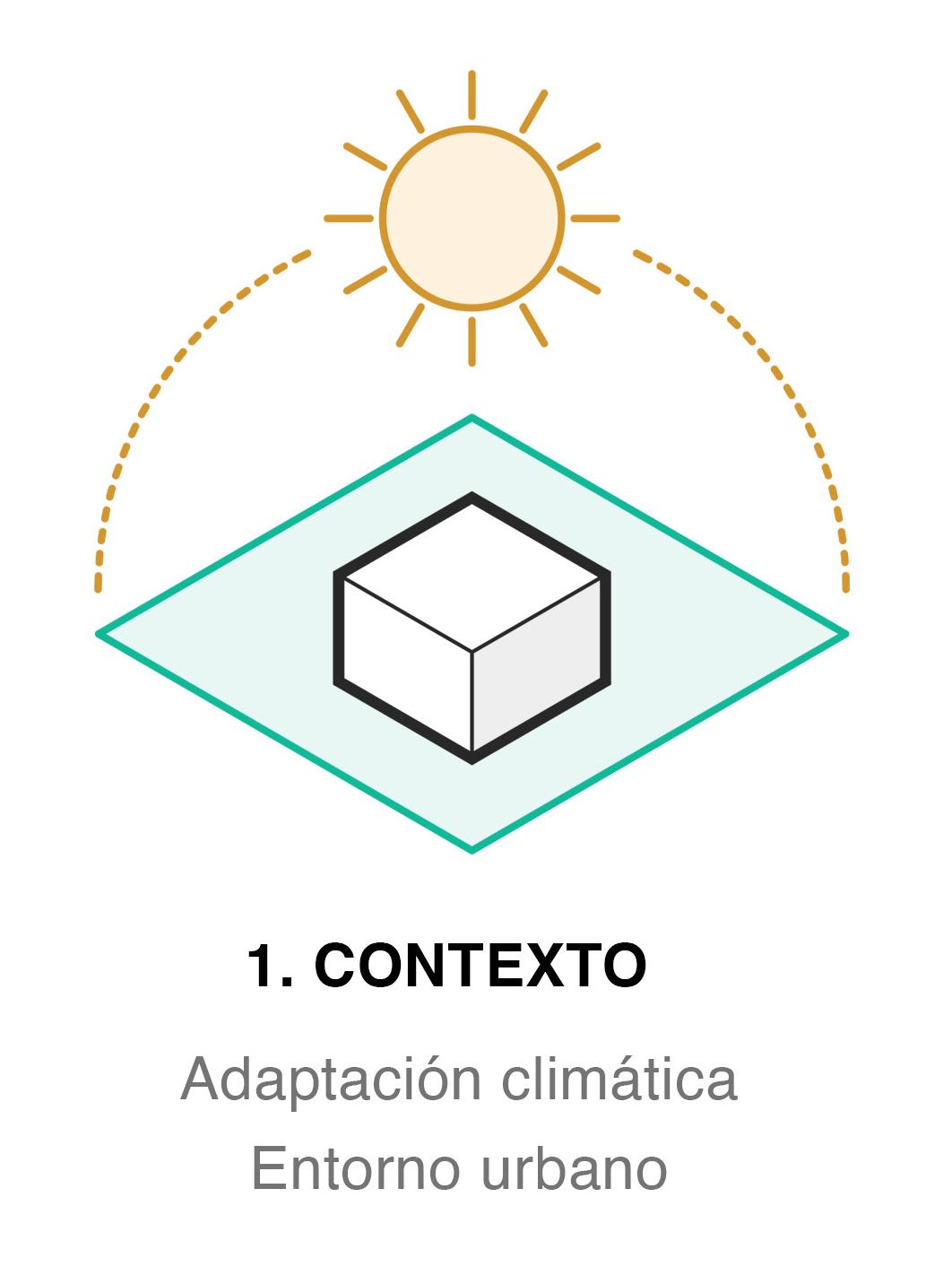 - Contexto: se plantea una geometría y tipología arquitectónica que asegure la adaptación del proyecto tanto al clima en el que se ubica como a su entorno urbano inmediato.